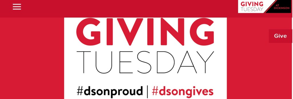 Ten years ago some thoughtful person decided that after Black Friday and cyber Monday, days all about buying, it might good idea to give back. So Giving Tuesday was born. There are countless charities that deserve your support. If you went to Dickinson College today is a good day to remember how important your days spent there were to your personal development.