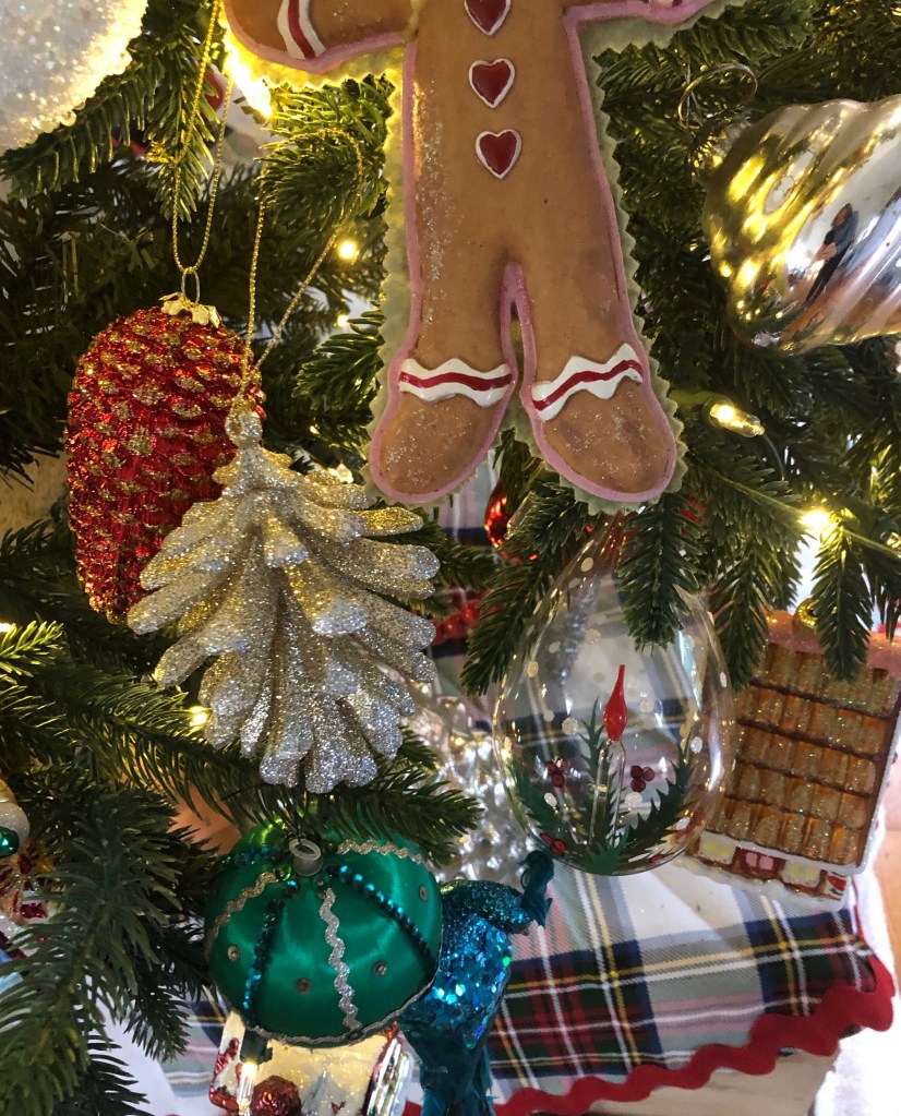 I like to collect ornaments from every place I go. I do not subscribe to “designer” Christmas trees where all the ornaments have a color theme. I see ornaments as the scrap book of my life.