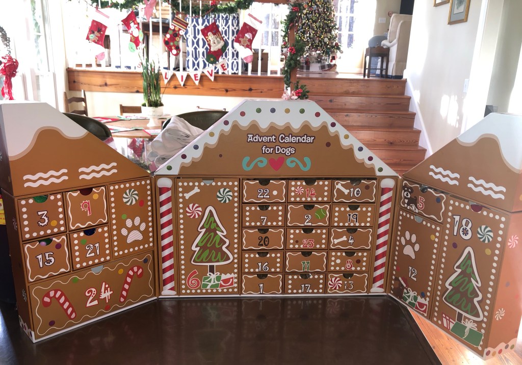 Now we have two advent calendars in our house to start today. Both are for Shay. When I asked Russ to bring them in from the garage he looked at the giant one and said, “Who needs grandchildren when you have a dog?”