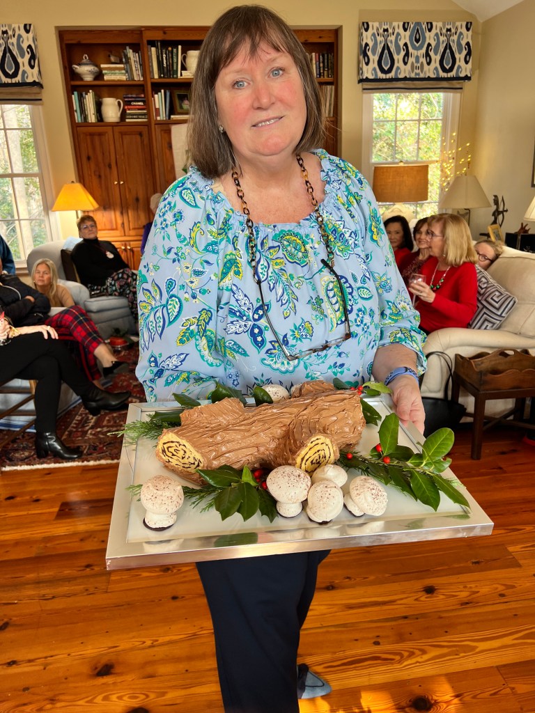 Carol Shepard brought her famous Bouche de Noel with beautiful meringue mushrooms. It went for $300! As did Holley Broughton’s Happy New Year wreath! Laura Virkler’s homemade jams and Anna Whalen’s Bolognese went for $300 each and my Turkey Curry in a red pot was just under that.