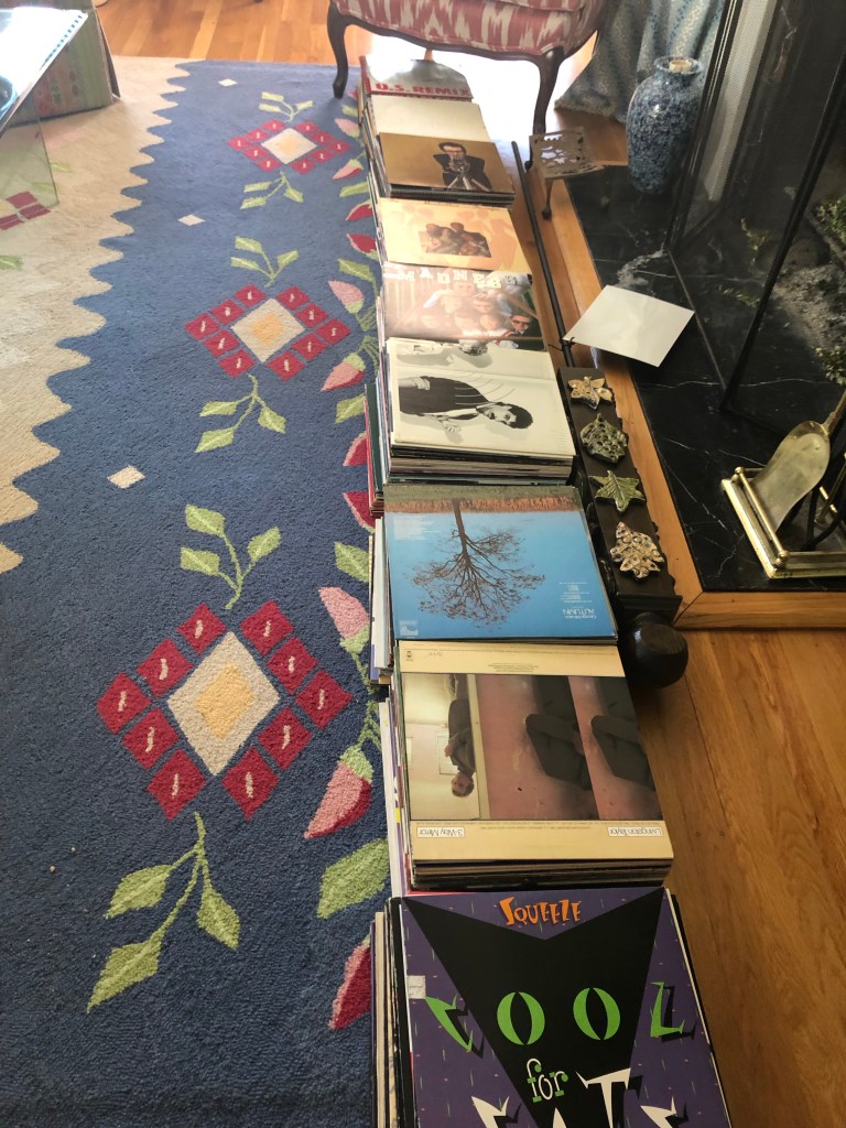 Many of these LP’s are from my high school and college years. Well loved and deep-grooved James Taylor and Jackson Browne’s filled the chest. I had started storing these records in the chest back in the days that I still listened to albums on my turn table. When we moved to this house the chest was needed in the sunroom and the albums stayed in it, far from my old stereo.