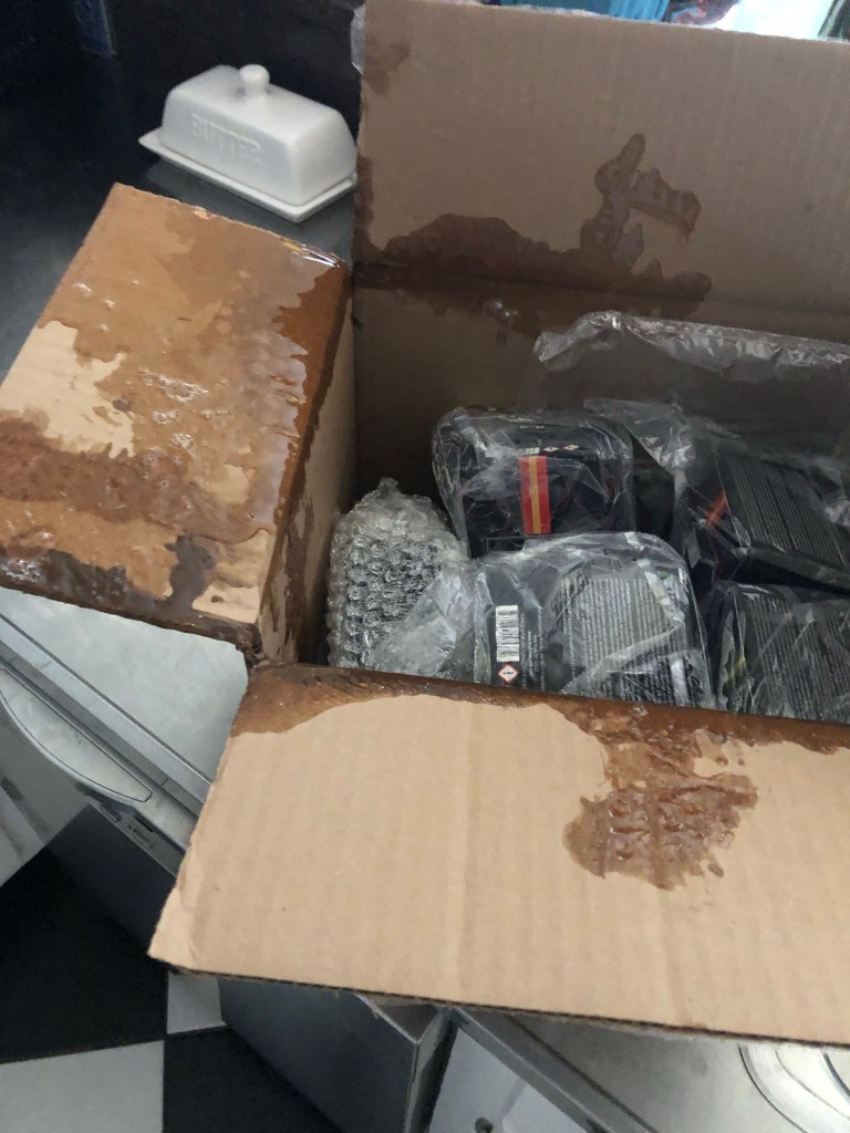 I photographed the evidence, having to wash and dry my hands between each removal of a slimy box. I called the manufacturer. They did not seem surprised and quickly sent me confirmation of a reorder as well as an email to send back my evidentiary photos.