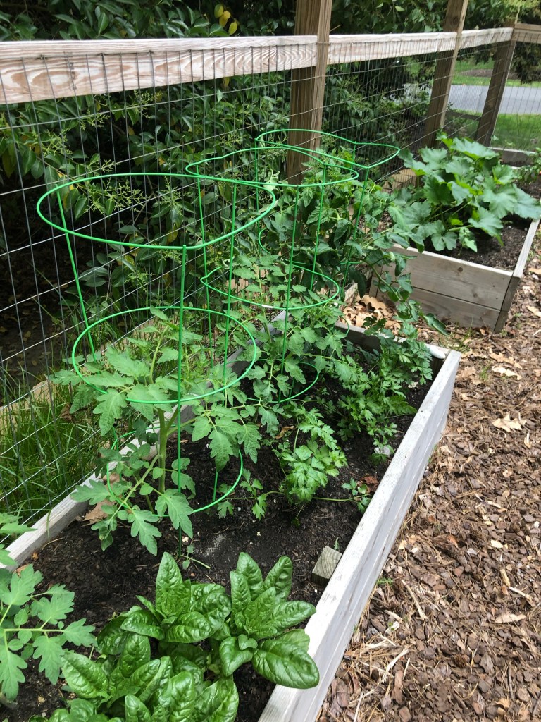 I waiting until the late afternoon to see if the rain came. It didn’t so I went out to work in the garden. I have a few new zucchini plants to put in as the last of the squash plantings. I had six more bush bean seeds to put in as part of the successive rows of beans. Weeding and pruning and the harvesting to spinach for dinner. I got a good amount of those jobs done except for all the weeding of the pathways. Then the rain started.