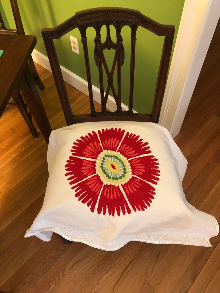 April is my busiest month in teaching, but I started stitching then just the same. I set a goal to be done with the first chair before the middle of August. I finished today more than three weeks in advance.