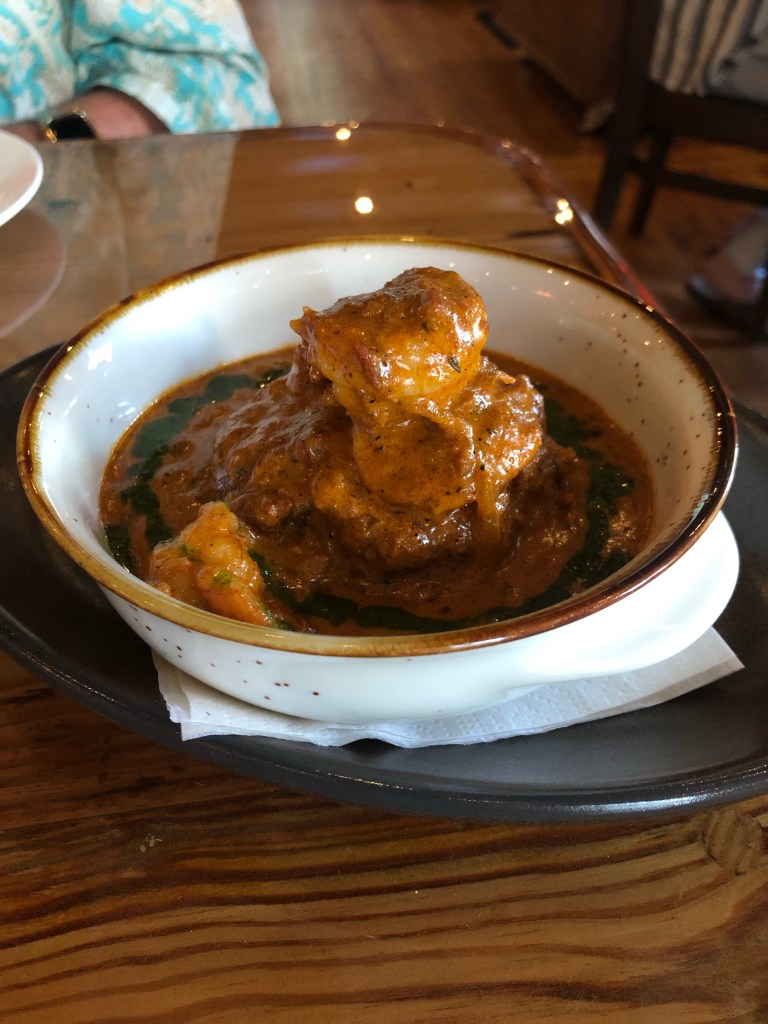 After we ordered, the hostess arrived at our table with two complimentary appetizers, a gift from Elizabeth. It was such a sweet and generous thing for her to do. Unfortunately one of them had gluten and the hostess wisked it away and brought back some mussels that were perfect. I enjoyed the shrimp on a grit cake which I have to say is one of the best things I have eaten.