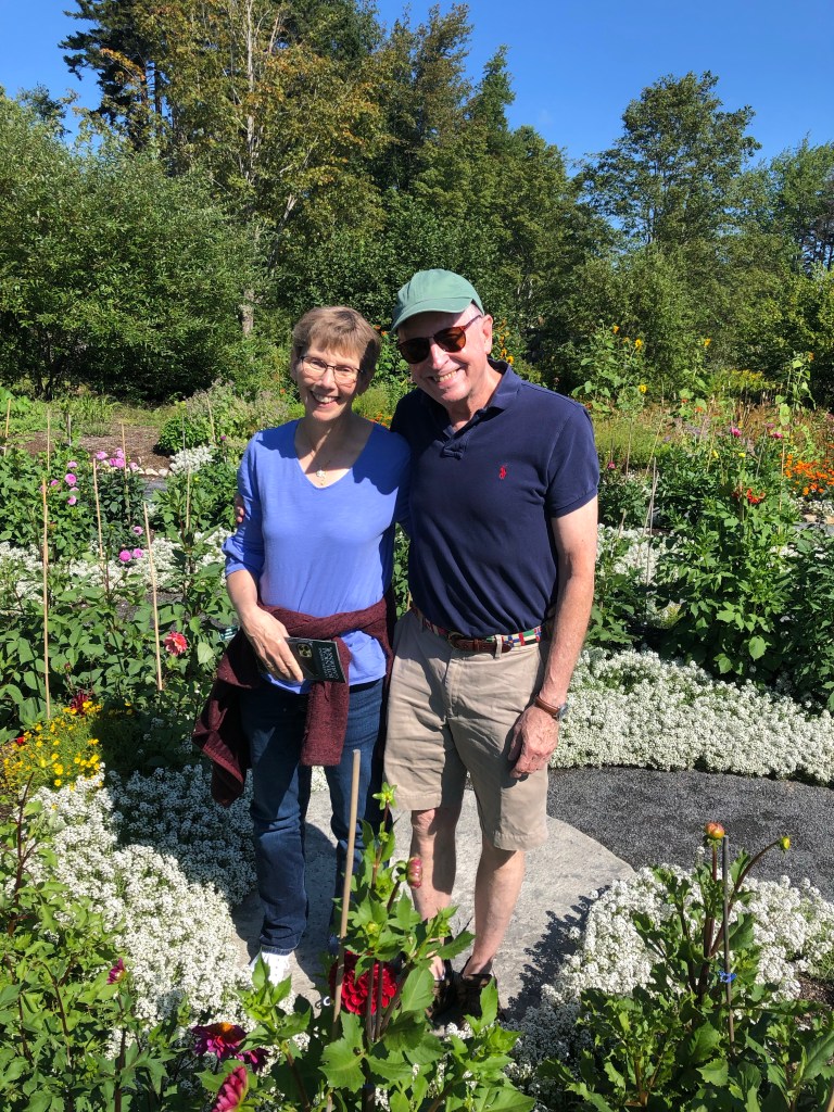 After my lobster breakfast Warren arrived for our trip to Boothbay to meet up with our friend Julie. It was the most perfect sunny day. We started with a trip to the fabulous Maine Botanical Gardens. This is my third visit there and I can not believe how much it has grown. We went in the butterfly house and I had one butterfly loving on my dress who stayed on my arm a while.
