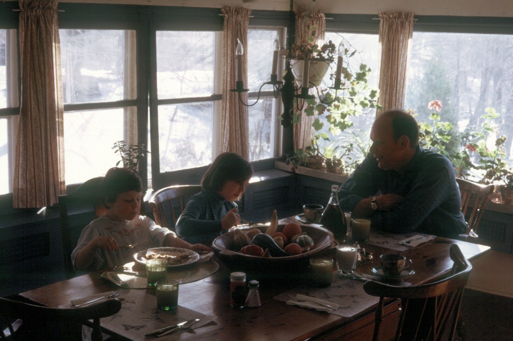 I came across this photo of Margaret and me eating breakfast with my Dad sitting with us. I was probably about eight and Margaret was five then. We had an antique hutch table that my mother still has in her breakfast room, and a tall antique side board, which is still in my mother’s dining room.