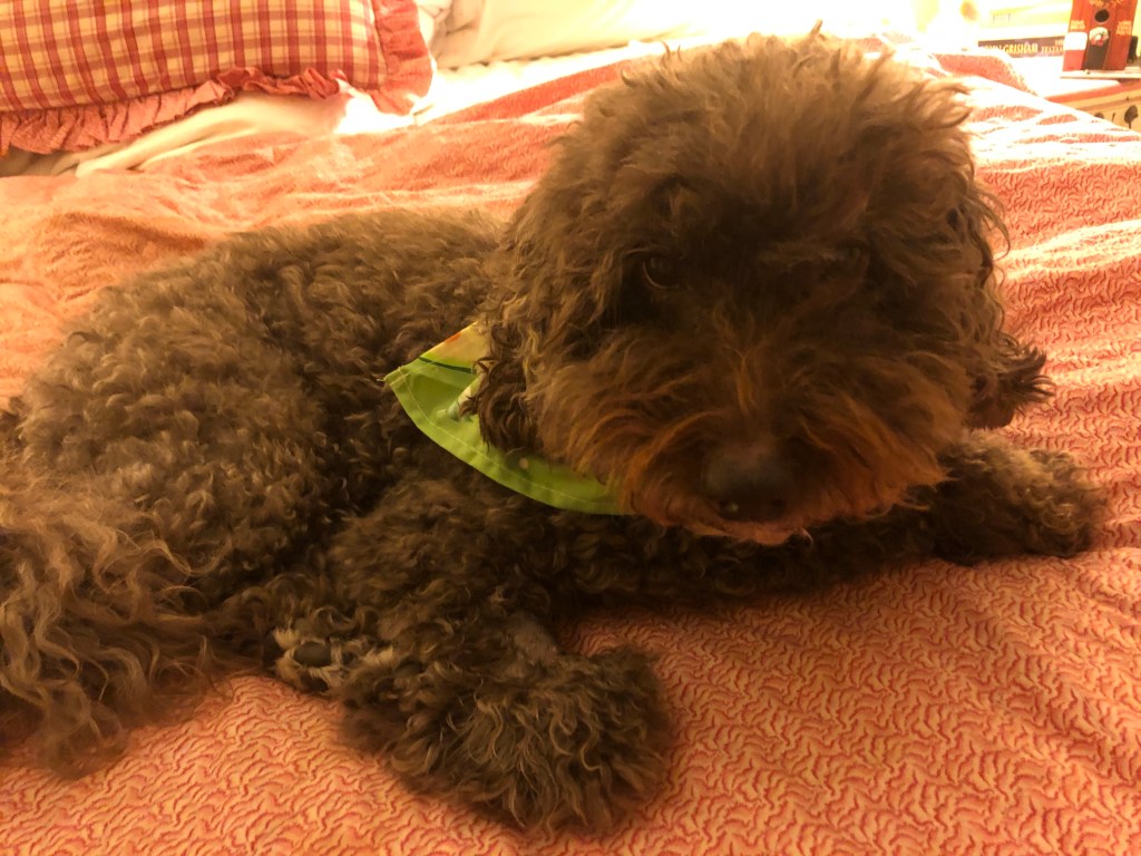 I realized when I got home that I had on a new green bandana I must have gotten at the vet for being a good patient. Mommy said when she was little and when Carter was little they always got a prize at the dentist for being good. I wish they had given me a steak instead of a bandanna with avocados on it. It must have been because I was only a two.