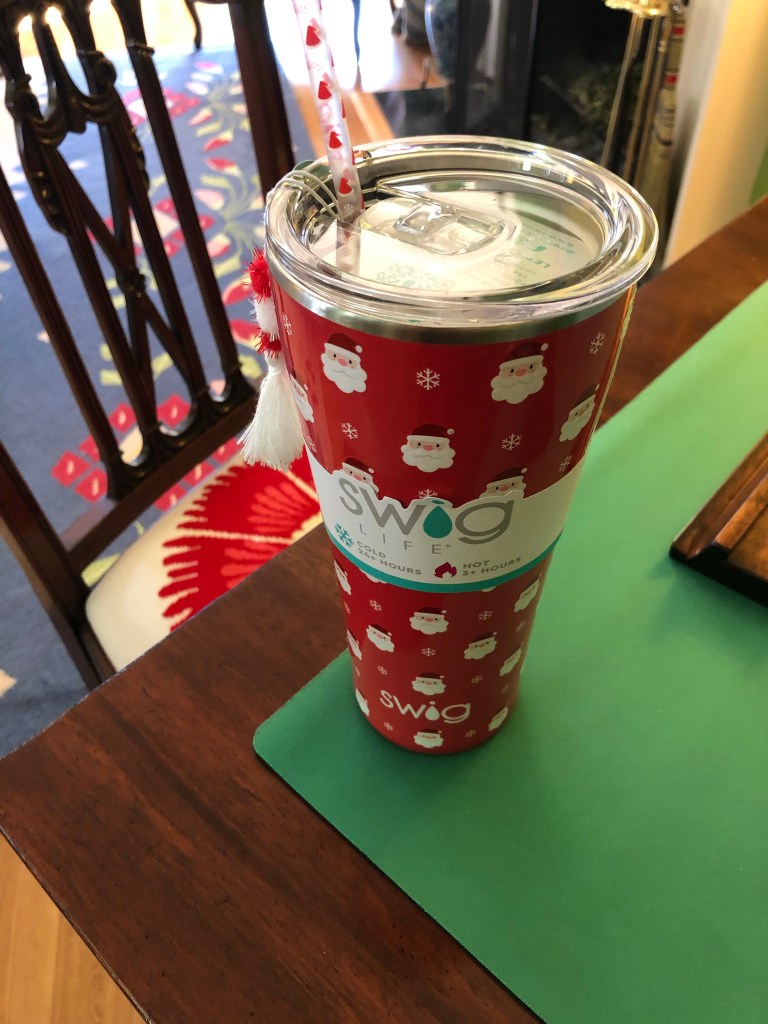 My day started with a little gathering of two friends and one brought us our Christmas gifts! It was because she wanted us to have a very cute cup to use through the holidays. I think I will use this cup all year since I love Christmas so much.
