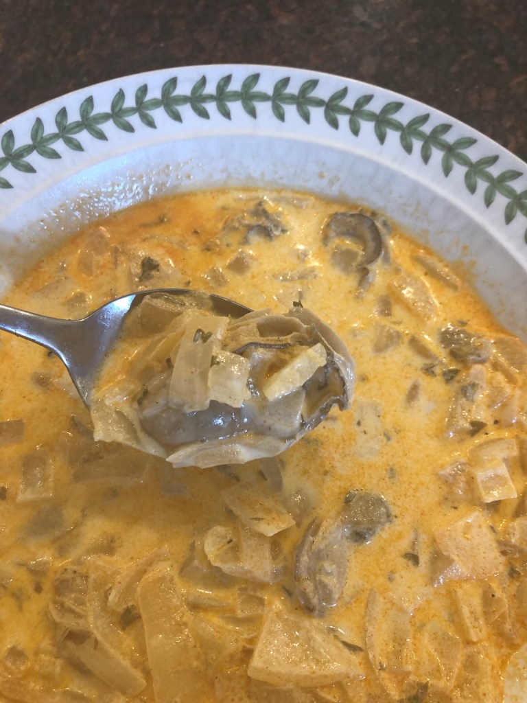 Posted: November 12, 2023 Filed under: Uncategorized 5 CommentsMy southern father loved Oyster Stew. We made gallons of it every Christmas Eve for the more than 150 people who used to come to our house for our family Christmas party. The Connecticut Yankees ate it up, exclaiming they had never had such a thing. I used to wonder if it was a purely southern thing. More than that I wondered why it was called stew at all. Our family recipe included only onions, butter, milk, half and half, spices and oysters. Of course it was served with oyster crackers. It was much more a soup than a stew, but who was I, a mere child/indentured cooked to question.