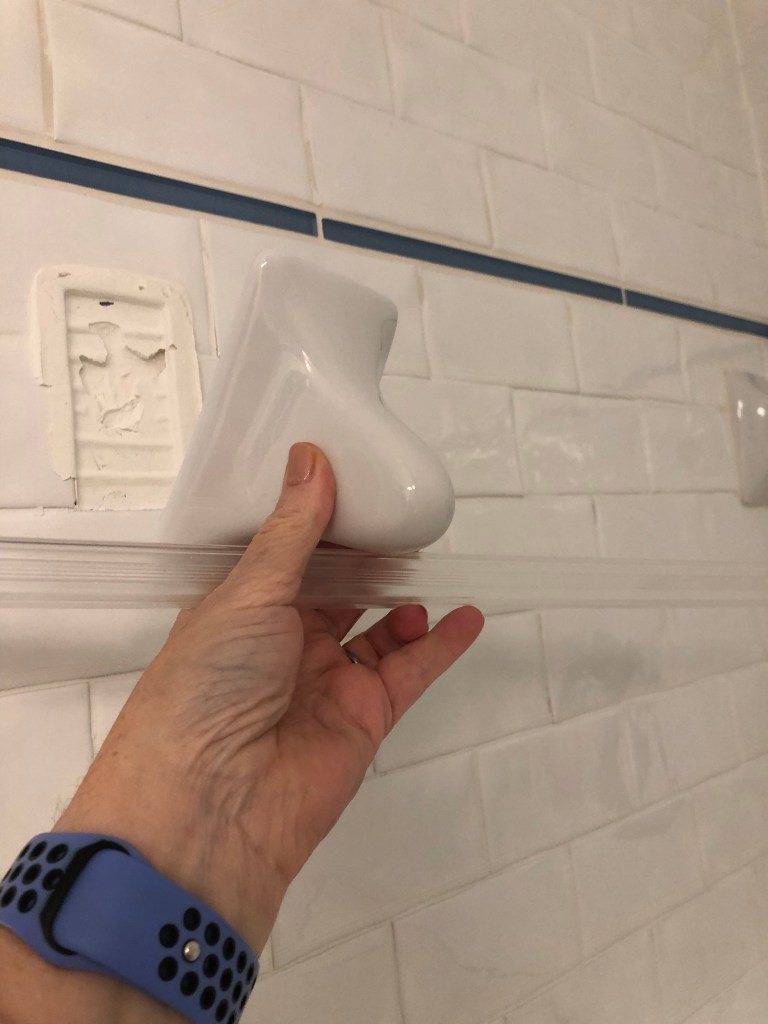 Posted: November 17, 2023 Filed under: Uncategorized Leave a commentI was trying to get all the towels off the towel rack in the shower so I could wash them. I pulled too many towels too hard and I bent the plastic towel rack to the degree that it came out of the ceramic holders. The holders that are set in the tile wall with motar and grout remained intact.