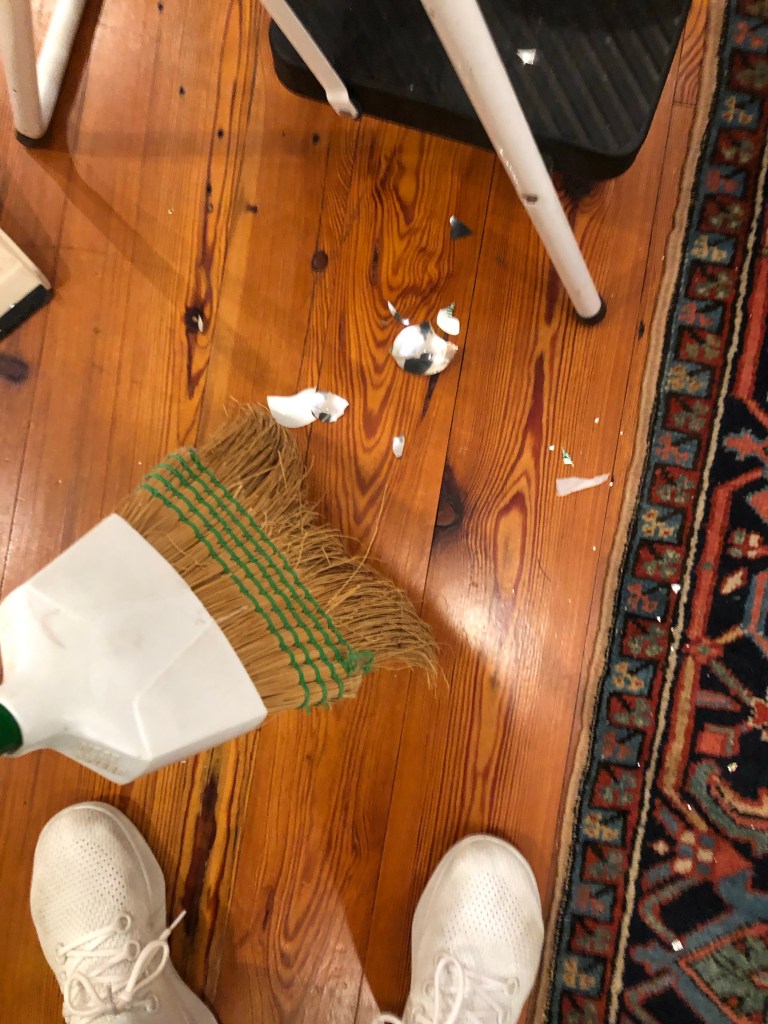 Then I dropped glass globes I thought I had hung securely only to have them jump off the tree to a certain death. I dropped a mirrored glass house and a hand painted glass ball. If all that wasn’t bad enough I rammed two balls together breaking both of them at the same time.