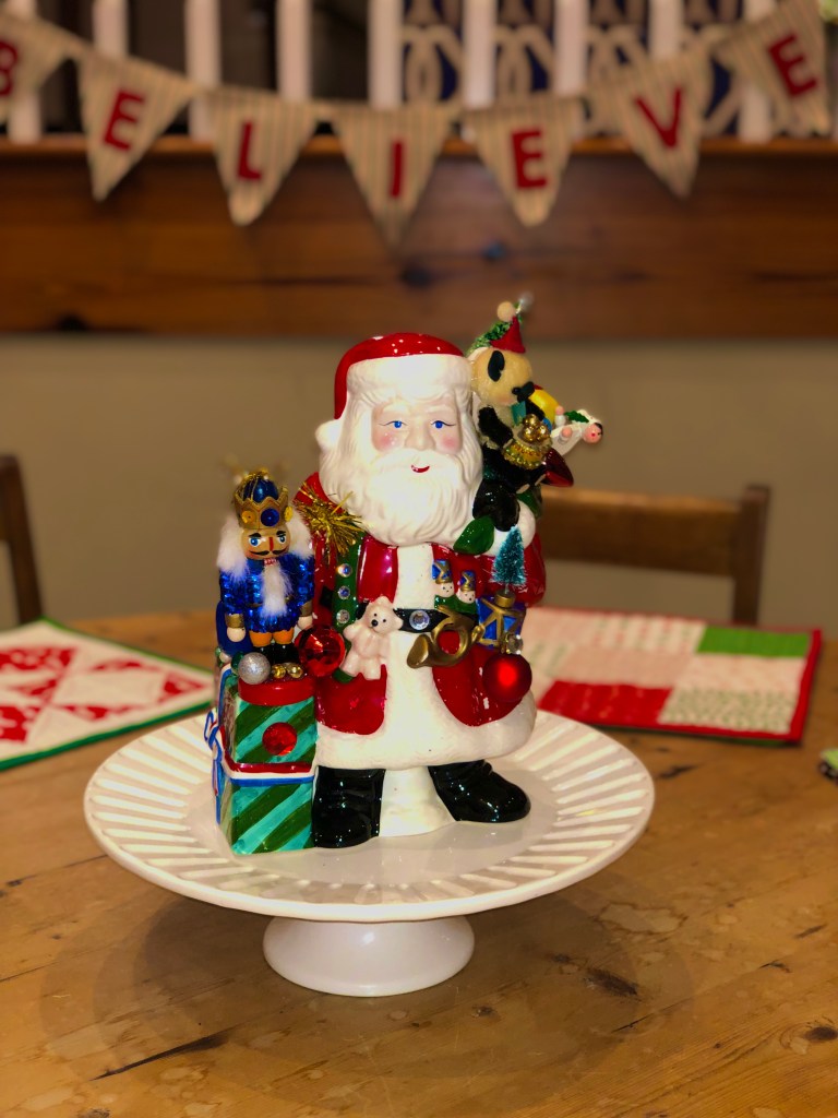 I also was able to obtain a Holley Broughton Original Santa Cookie Jar, jazzed up in only the way Holley can do. She texted me this morning and I was able to run over to her glitter filled workshop to see all the other cute decorations she is making.