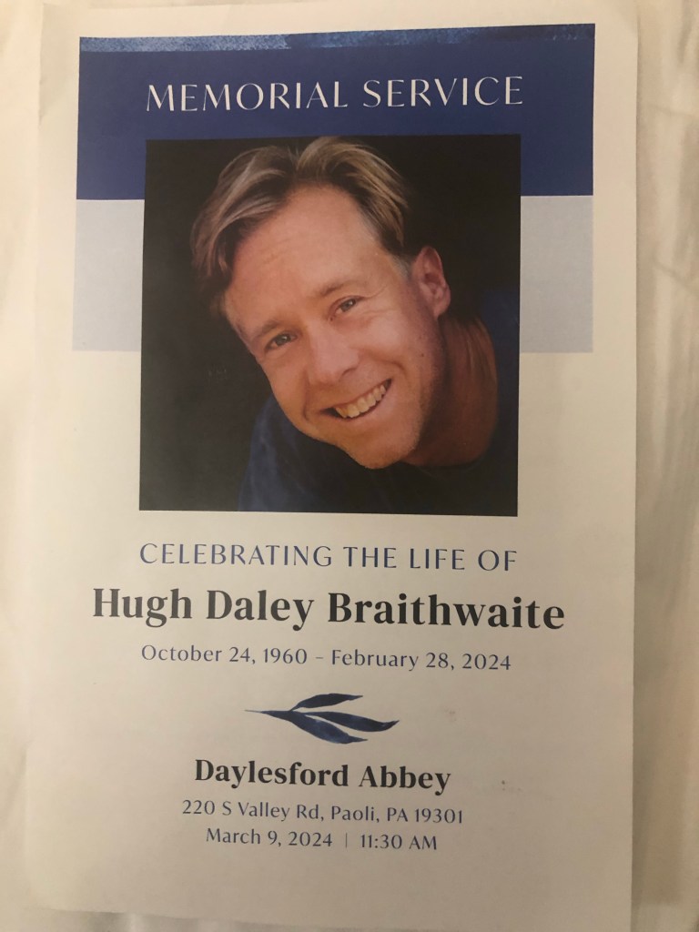 Posted: March 6, 2024 Filed under: Uncategorized 1 CommentThere are small silver linings in most tragedies. Because I write this blog I am often an early “alerter” on things. Such was the case in the passing of my friend Hugh. His official obituary in the Philadelphia Inquirer took a few days, and it was beautiful and worth the wait. You a read it here.https://www.inquirer.com/obituaries/hugh-braithwaite-obituary-communications-philadelphia-marketing-20240305.html