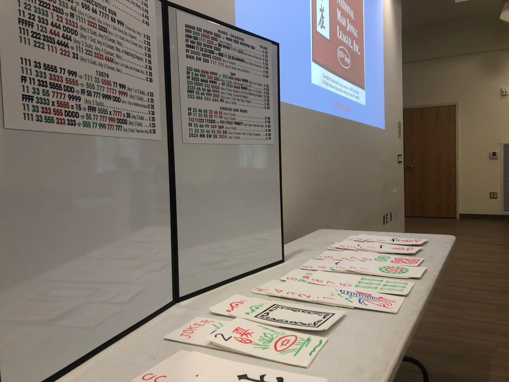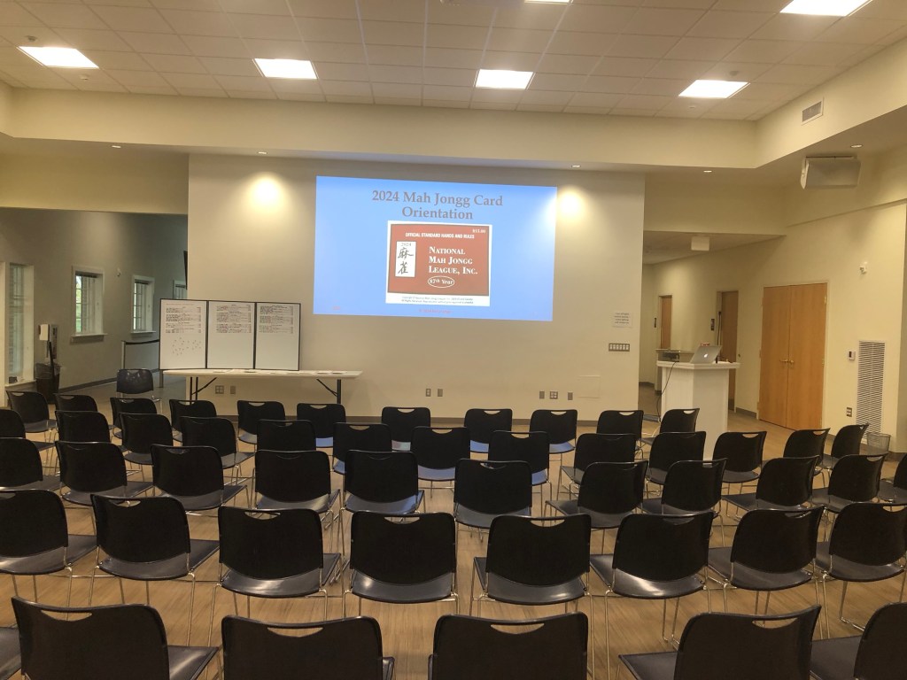 I got to the club at 7:45 this morning, just to make sure everything worked right. Everything at CCC always works right. Gus, the manager is so helpful and supportive of Mah Jongg at the club and he spent some time with me between classes extolling the club’s love of Mah Jongg. It is so great when a club get’s how Mah Jongg is good for the club.