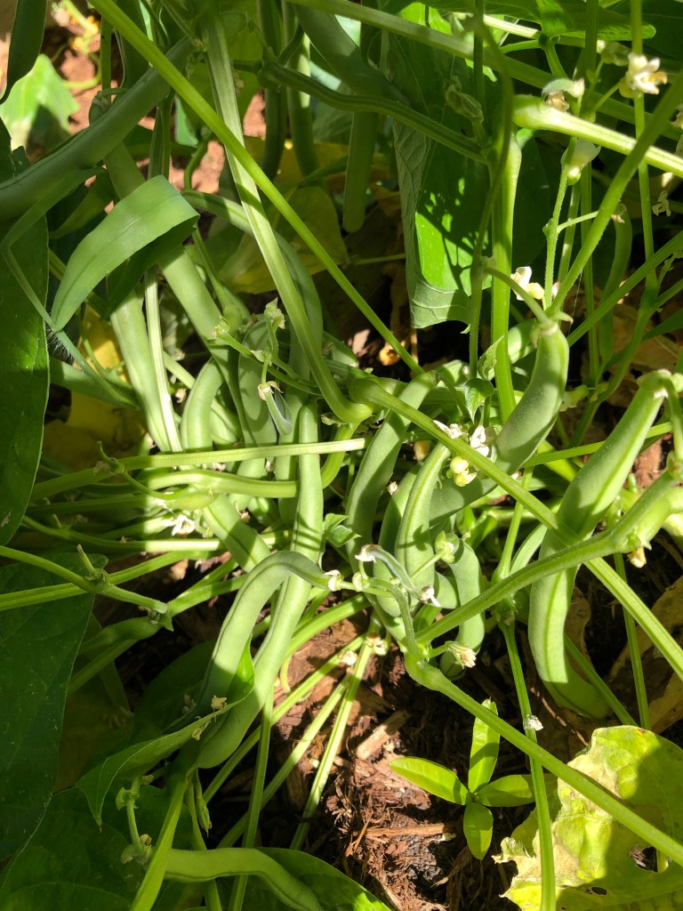 Since I was away most of last week, my garden did not get picked. My green beans grew and grew. I needed to harvest if I wanted edible beans. Bending over to do it was not my favorite. Despite my raised beds, they are not so tall that one doesn’t have to bend way over to pick.