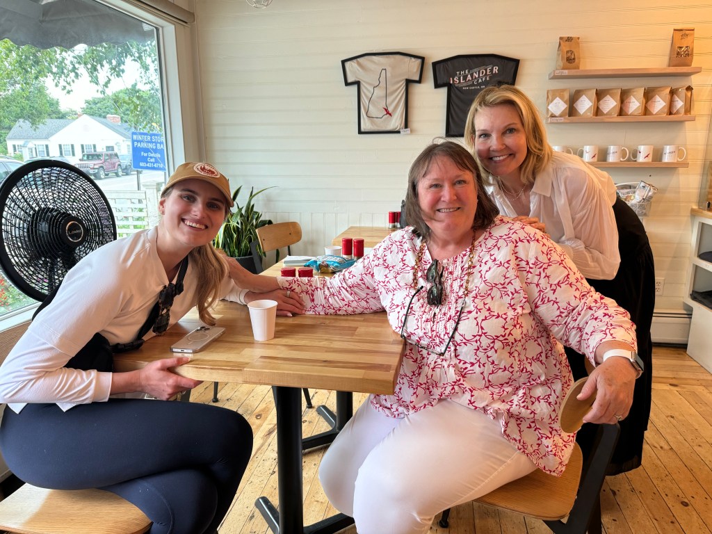 Posted: August 7, 2024 Filed under: Uncategorized Leave a commentThe goal of day two of driving was to finally get Shay to Boston to meet Norman. We left early from Pennsylvania and it was raining. Shay spent the whole morning standing up in her car seat watching the trucks drive by. We stopped in Norwalk to have lunch with Nancy Mack. We totally lucked out as the rain stopped for just one hour so we could eat lunch outdoors.