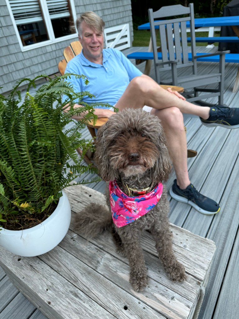 Daddy worked out on the deck most of the day. I think he was looking at the water. Maybe this is what he means when he says he is working on a deck. That’s all the news from Maine. Little Brown Dog signing off.