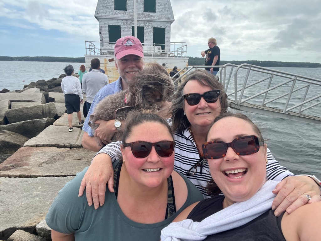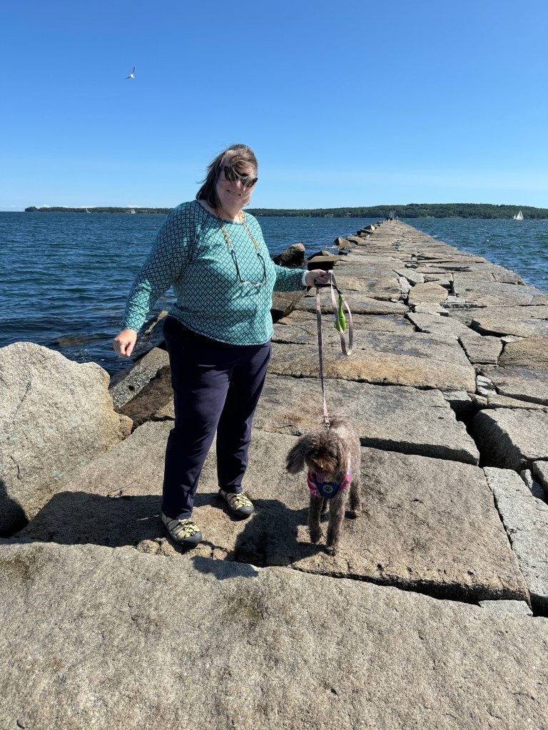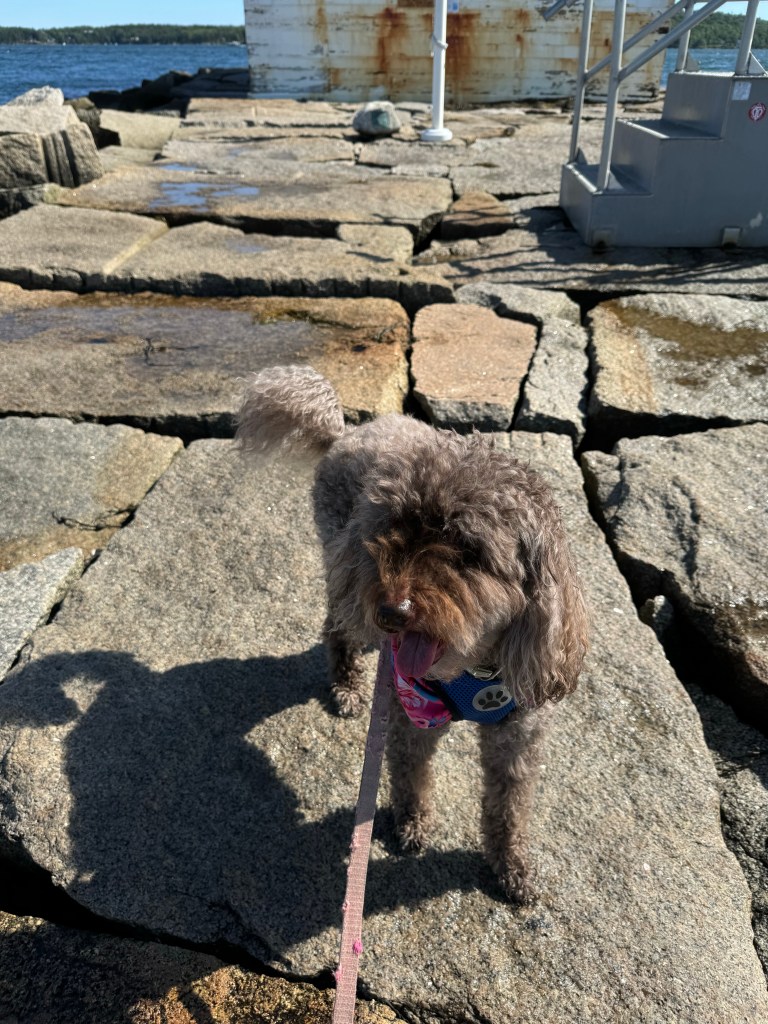 Posted: August 22, 2024 Filed under: Uncategorized Leave a commentMy Daddy wanted me to go on a walk with him today, but then I heard Mommy and her friend Karen say they were going to go to walk on the breakwater. I looked up at Daddy and said, “I’m with the ladies.” So off we went.