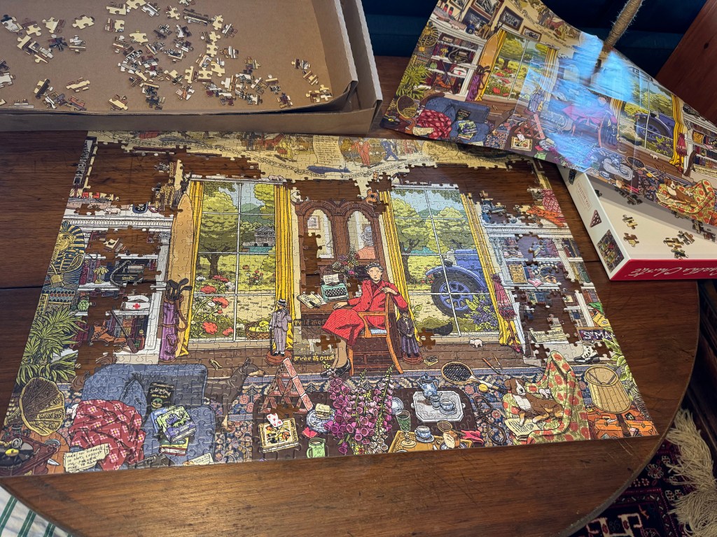 Posted: August 26, 2024 Filed under: Uncategorized 2 CommentsTwo activities I love to do in Maine are puzzles and going to Auctions. I am almost done with this Agatha Christie puzzle which has been lots of fun and not too hard. I don’t always have the best light to puzzle here so I appreciate an easy puzzle. When I finish it tomorrow I will donate it to the house like I did last years. There are a number of puzzles here and I will pick one of theirs to work on next.