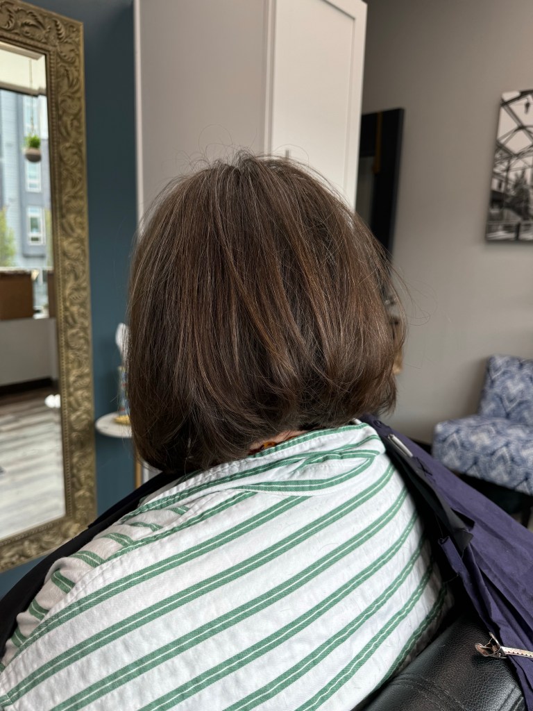 Today, in anticipation of the big wedding we are going to next Saturday, I asked my hairstylist to cut my hair shorter in the back so I could attempt to not look like a little Dutch boy. She took photos of the back. Wow. I quickly sent them to Carter and told her it was going to be her job to try and recreate this. She altered me to the products I would need. This is going to be another virgin territory, the purchasing of hair spray.