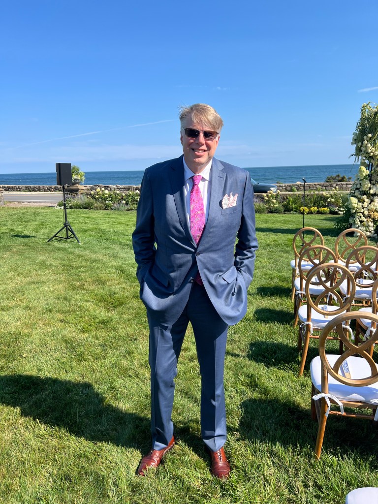 As is always my role, I will be laughing first and hardest during the service giving all other attendees cues and permission to laugh. It will be funny, but also sweet and heartfelt. Oliver came up dressed for the rehearsal two hours in advance and needed me to sew a rip in his blazer. Sure enough, Suzanne pulled out the wedding sewing repair kit and I had all the needed tools to take care of the job.