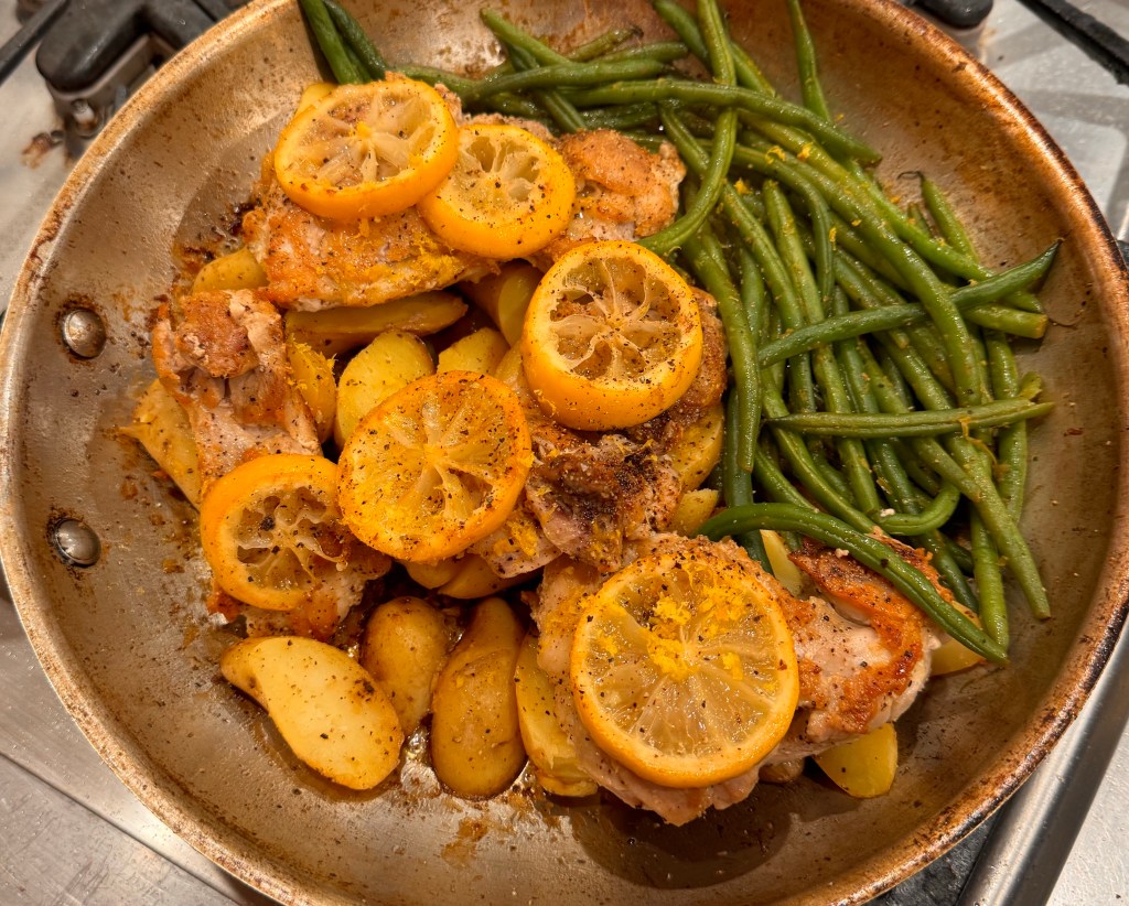Russ did all the horrible work. What would I do without him? Now we are working on not collecting leftovers and eating what we have already made. Last night I made Salad Nicoise with salmon. I had leftover green beans and boiled fingerling potatoes so tonight I made lemon chicken with potatoes and green beans, we only ate half of it so we will have the same thing tomorrow. No leftovers. Carter is never going to believe this.