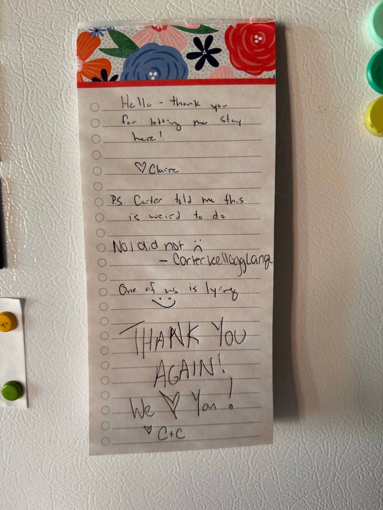 Turns out it was a litany of thanks you from Claire and Carter, just waiting to be discovered. I am so glad I did notice it. It was so sweet. (And no one was lying.)