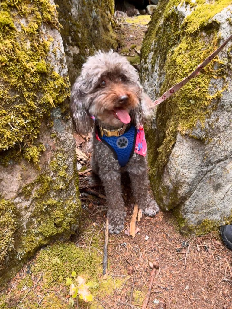 She is an excellent trail dog, especially given her cataracts. At one point in in the hike, when she was first let off leash she had the zoomies and ran all round Russ. She went almost five miles today. No one would guess she is 13.