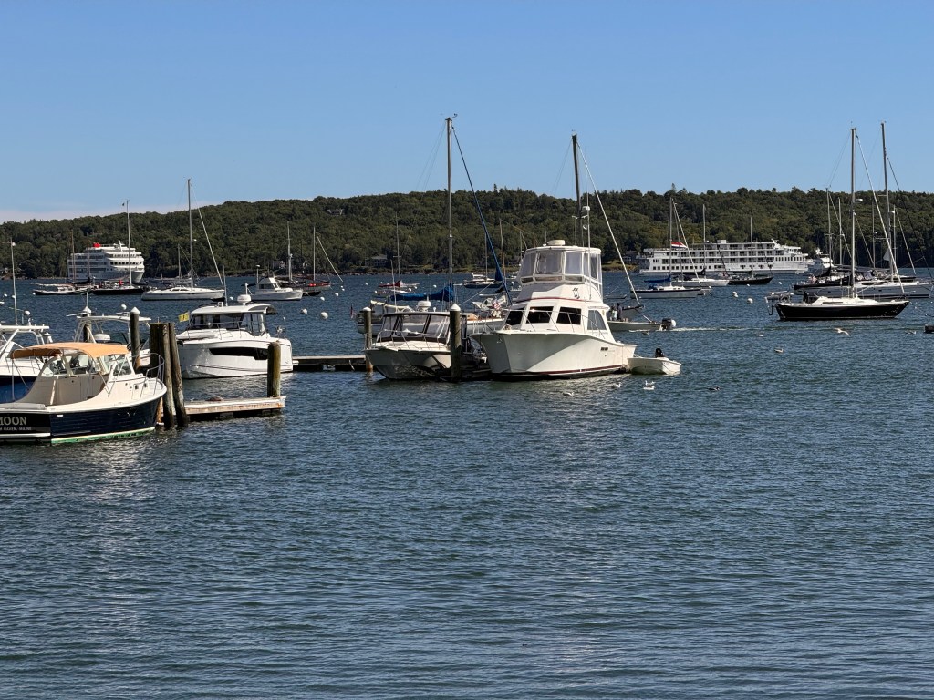 After our three hours in St. George we headed back to Owl’s Head General store. It was surprisingly closed for a four day weekend for staff to recover from the summer. So we went into Rockland. To our surprise there were three Cruise ships in the Harbor. Two were the tiny American Cruise Line ships that we are used to seeing here. But one was. Holland American giant 5,000 passenger ship. A guy in the harbor told us it had gotten in this morning.