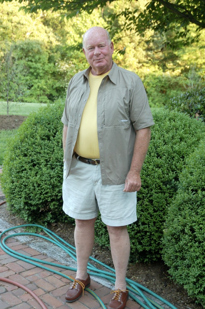 I have to say that I really like his outfit, which I picked out for him this summer. Russ is the king of wearing clothes until they are too tattered for me to repair. He needs new Nantucket Red shorts, but does not like the price so the two old pairs keep getting reworn. No one much sees him in them, except the neighbors who pass him walking Shay.