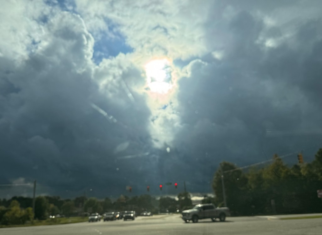 Posted: October 1, 2024 Filed under: Uncategorized Leave a commentDuring my break between my afternoon and evening classes I ran out to do an errand. Again, like yesterday, the sky grew dark to a scary degree. Then suddenly the clouds broke apart and the sun burst forth into what looked like an angel.