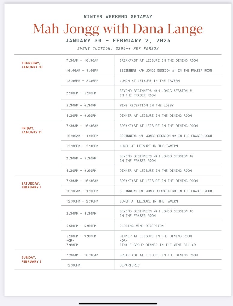 Mah Jongg lessons make the perfect Christmas gift for that someone in your life who already has everything. I will also be there again in April if Spring is more your season.