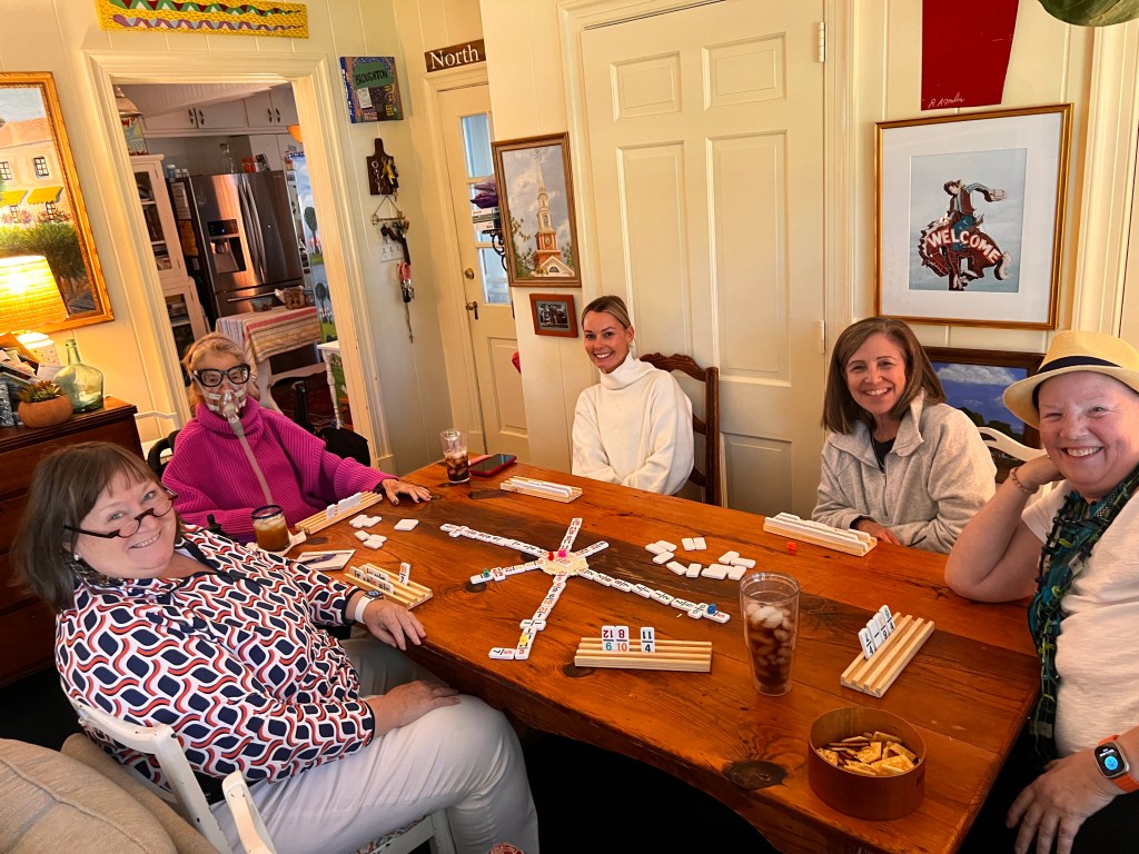 Holley is a game lover and Mexican train is a game that does not involve talking. It was a fun afternoon to all be together.