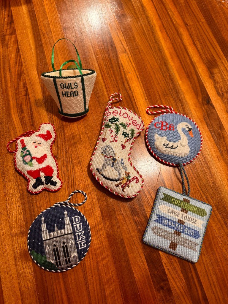 This year I was given an ornament of an LL Bean bag with Owl’s Head stitched on it. Owl’s Head is the town where we stay in Maine. My friend Christy made it and I absolutely love and adore it. Christy is always great at creating the most personal ornament.