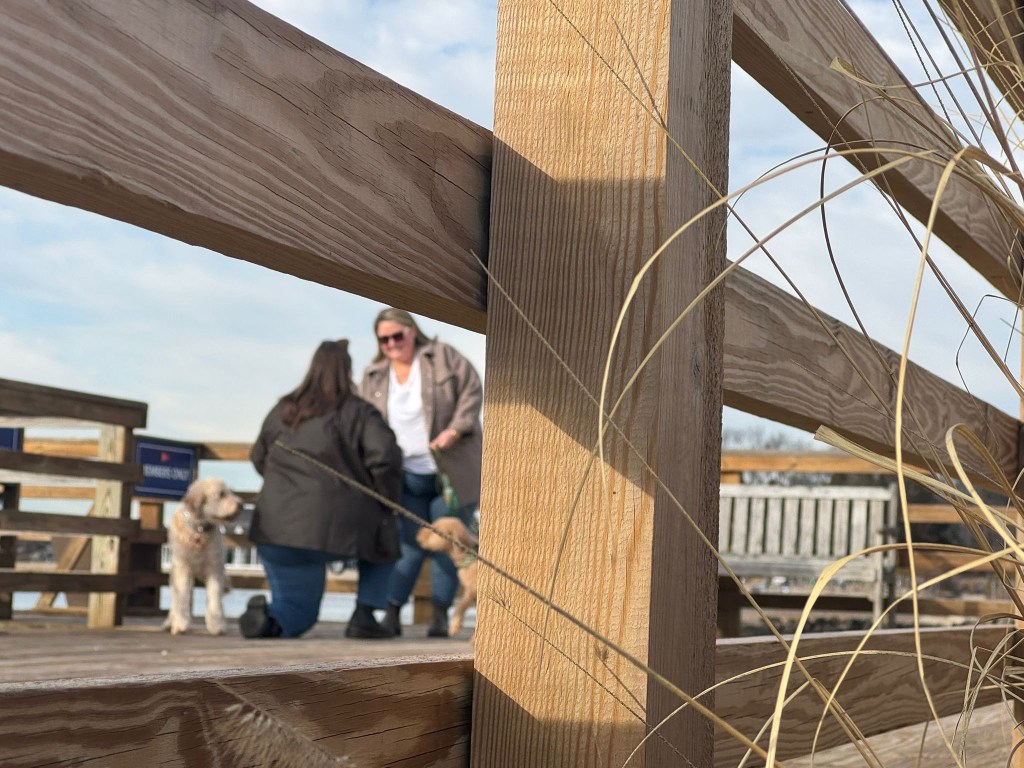 We tracked Carter and her location on our phones so we made sure not to run into them. The plan almost got pushed back by Claire’s trip to Old Navy. Russ and I met up with Alex and Lilla, and baby Hadley (Claire’s next up brother’s family), at the Weed Beach Parking lot and we walked to the snack shack where we were going to be hiding. The rest of the family joined us. Barb, Claire’s mother held her grandson Hadley to quite his sweet coo’s as we hid. Claire’s Dad, Duane, was across the water with a paparazzi sized lens on his camera shooting the whole proposal from afar.
