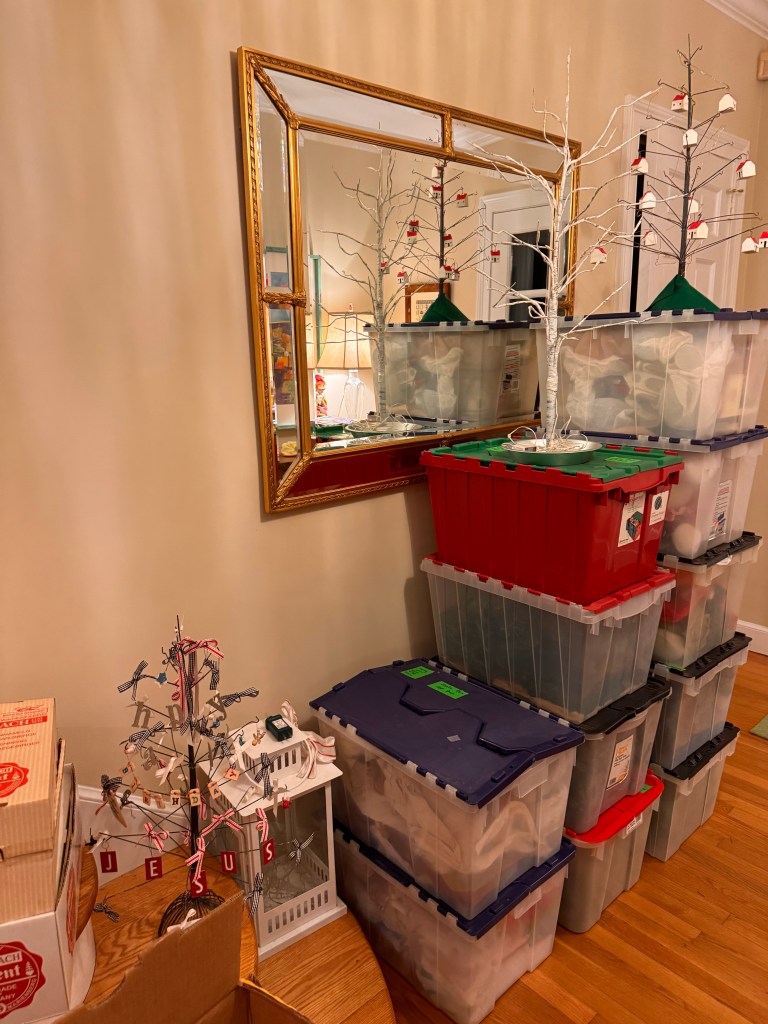 Posted: January 2, 2025 Filed under: Uncategorized Leave a commentRuss had to go back to work today. Last night he brought all the Christmas boxes out of the attic so I was set up to start the de-Christmasing. I did not jump right out of bed. Taking Christmas down is my least favorite thing to do.