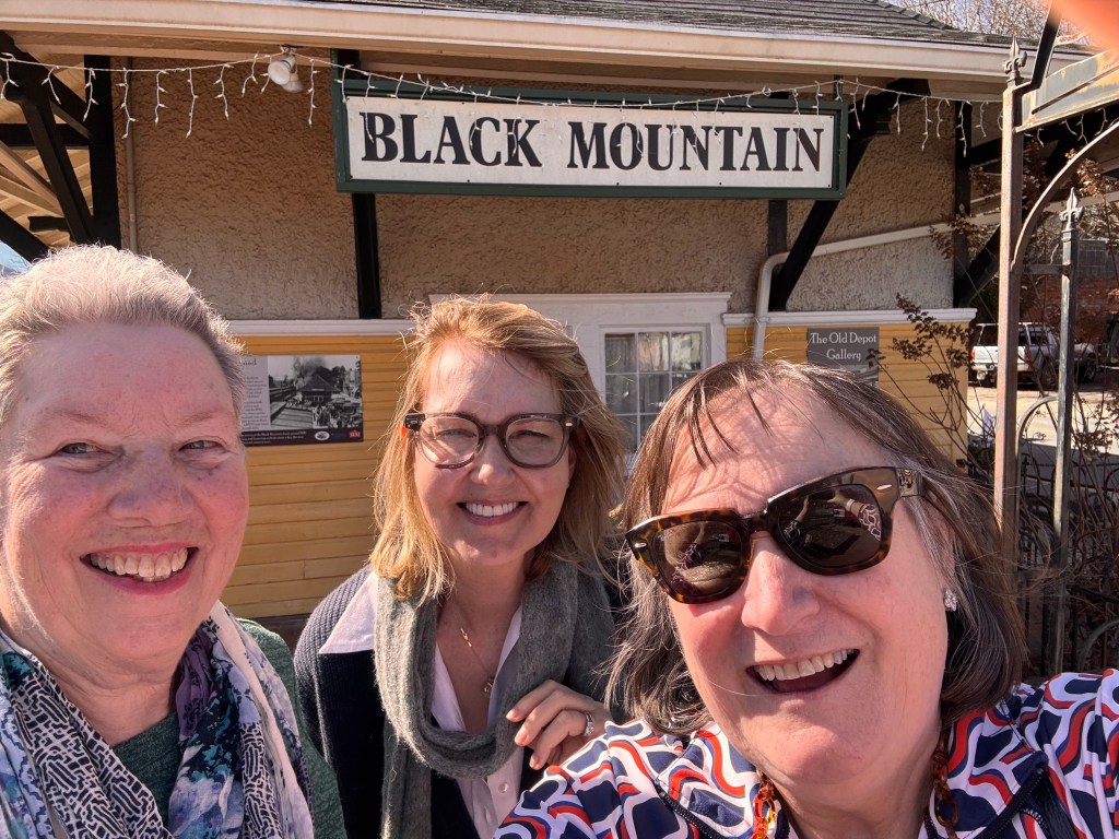 We had a beautiful drive west. All of us like a good road trip. Jan picked our stopping point for lunch, the Veranda in Black Mountain. We were very interested in seeing how things had fared since Hurricane Helene. We saw plenty of giant piles of tree debris that were systematically being ground into mulch. I have a feeling if you pulled a truck up they would gladly fill it with free mulch.