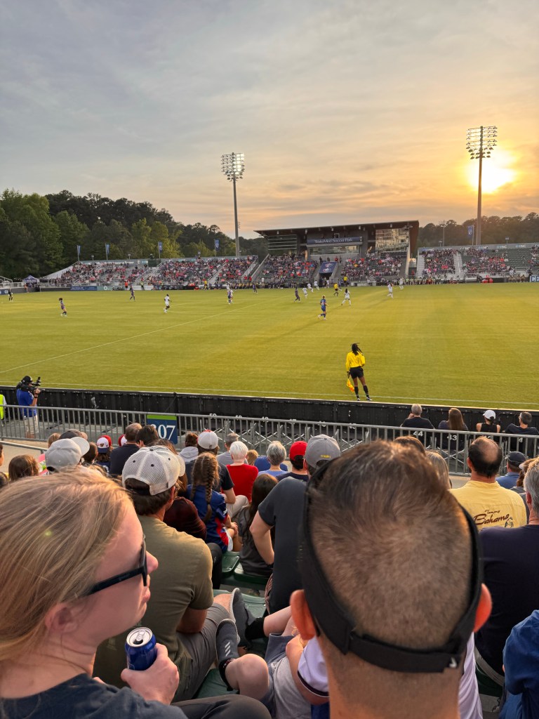 When Russ asked Carter and Claire what they wanted to do when they came to visit they nixed the same ‘ole Durham Bulls game for a new sport… the NC Carolina Courage. The professional women’s soccer team in Cary was a sport we had never gone to see.