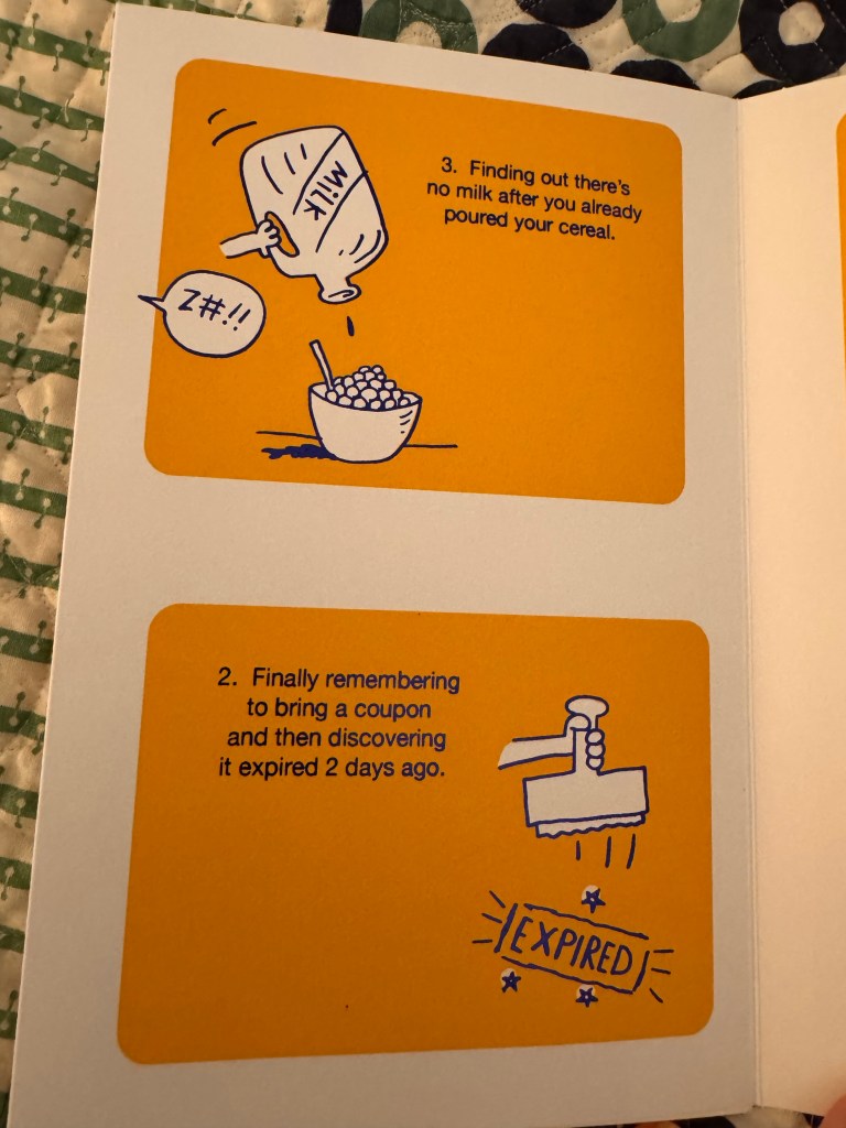 First. Hire a professional editor. Making two different mistakes on the two different sized cards is inexcusable. There is no way that is a printer’s error. Printing hasn’t worked that way in the last 30 years.