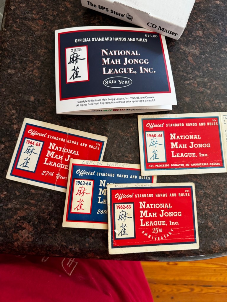 Posted: June 22, 2025 Filed under: Uncategorized Leave a commentI have been playing American Mah Jongg over 30 years. I have my cards from all those years, although they are scattered around the house. I don’t think I could find them all easily. Apparently they might be worth something on the secondary market.
