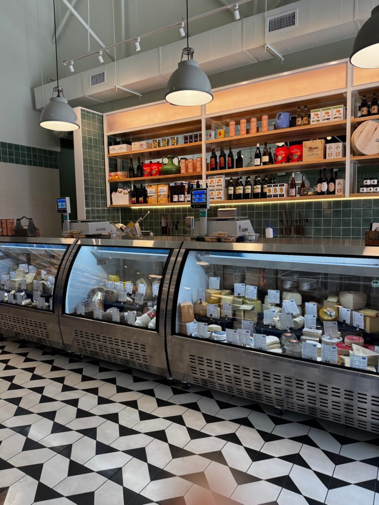 We entered the beautiful little shop and found that there were more people working there than there were eating or shopping there. This meant they had no trouble seating us at the counter. We ordered the cheesemonger’s choice of a cheese plate of three cheeses and a lox toast.