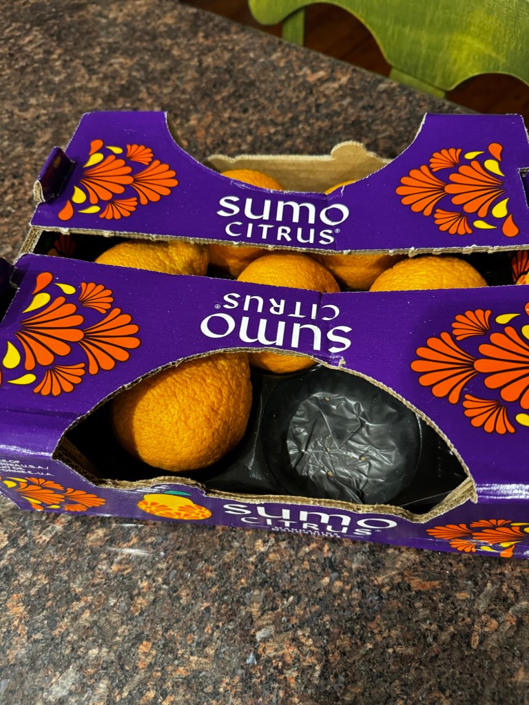 For me this means eating as healthy as I can. Today Russ bought me a box of liquid sunshine and vitamin D. They are Sumo mandarin oranges. The beauty of them is that the sweet orange flesh pulls cleanly off the peel.