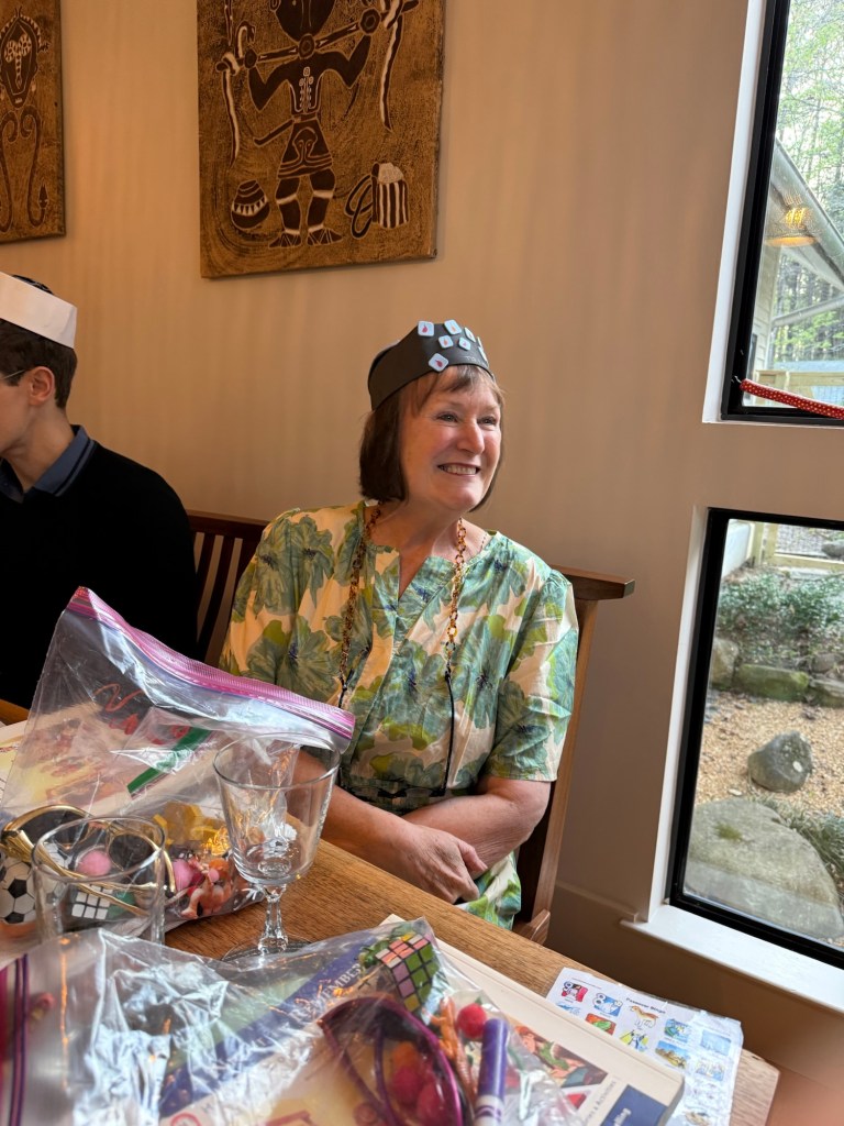 Julie made many delicious dishes which were enjoyed by all. Especially her matzo crack toffee. Walt gave me the “best reader “ award zebra. I did get very choked up as I was the final reader. An excerpt from the diary of Anne Frank, “I still Believe.”
