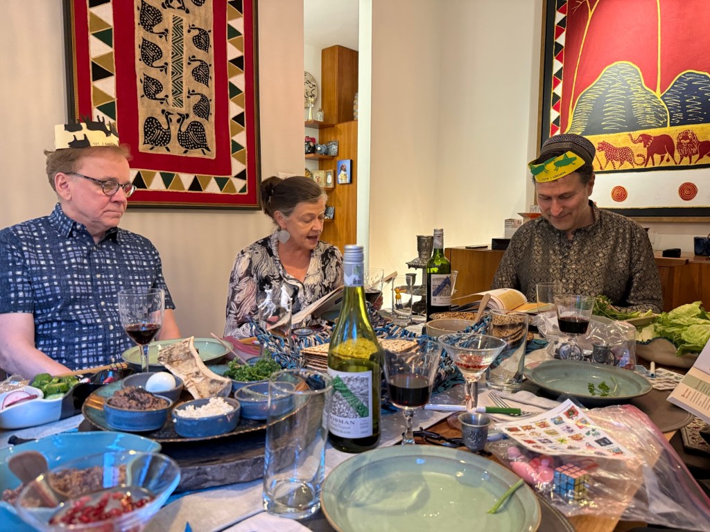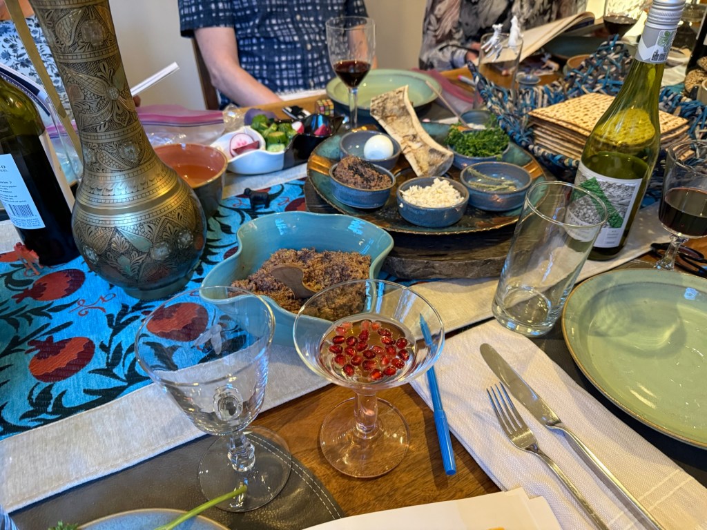 Russ and I had the honor of attending the Passover Seder at our friend’s Julie and Paul’s house tonight. It was a meaningful evening of family and friends. PAul, ever the professor, took us through many readings about the meaning of the Seder. Each of us read different parts from a book to guide us to think about the world and the year ahead.