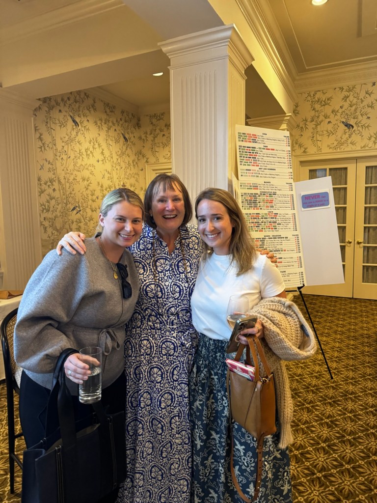 Then I had the night class, self dubbed the cocktail class. It was full of all the cute young friends. Anna Claire told me her group was coming and wearing their new Wednesday Mah Jongg group Sweatshirt. I made sure to get a cute picture with them. And with my darling Meghan and Caroline. I always wish I had more time with these friends.